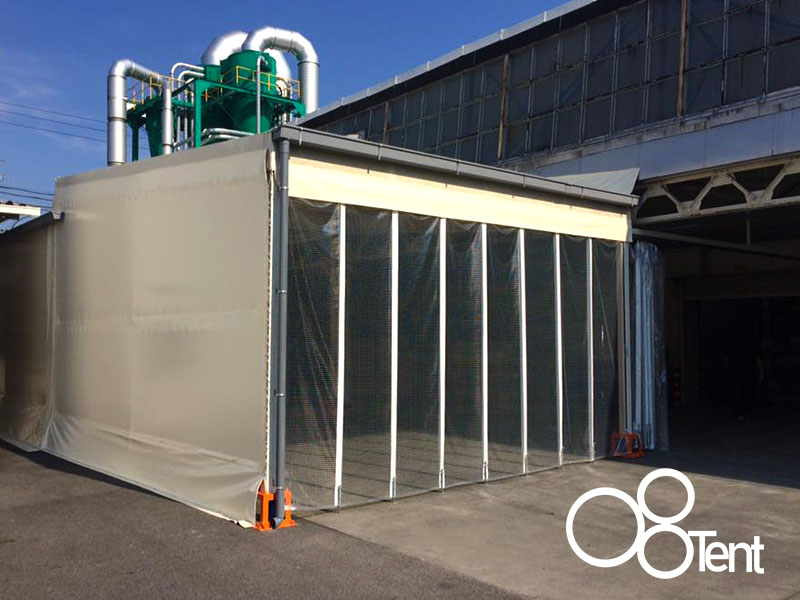 もちろんテント生地は防水性能が付いたものを使用しているので 安心してご使用いただけます! 他にも透明・半透明の生地や、様々な色や機能を持った生地の取り扱いがございます。また、店舗のロゴ入れ作業等も承ります!洗車テントや水対策テント、間仕切りテントのことなら丸八テント商会へお気軽にお問い合わせください!