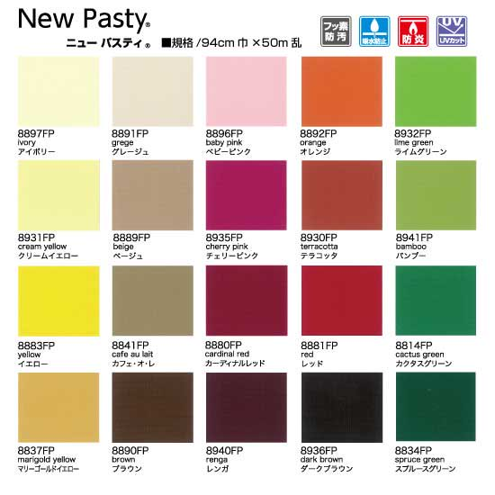 燃えにくい生地で、吸水の防止作用、UVカットの効果が期待できる生地です。