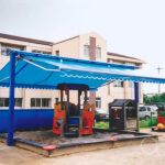 可動式のオーニングテントには、ロールオーニング(アーム支持の巻上方式)、ロールスクリーン(垂直型巻取方式)、フードオーニング(可動型幌式)などのタイプがあります。