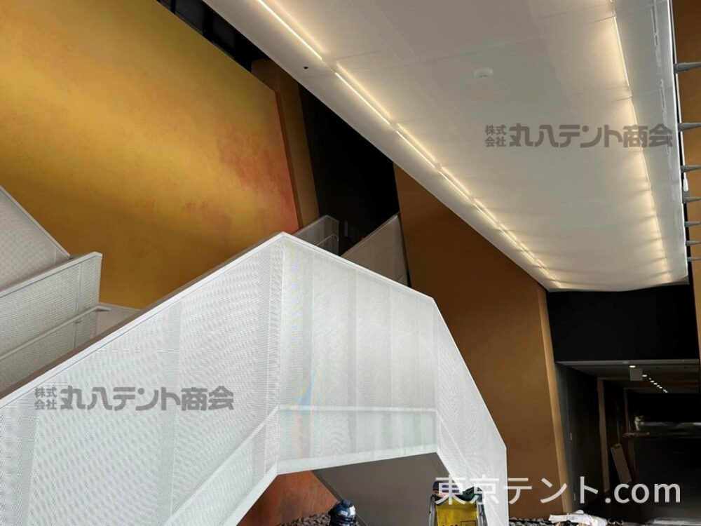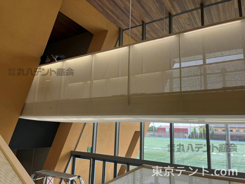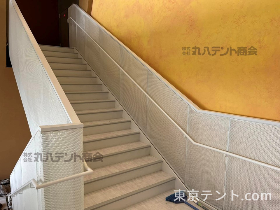 メッシュ生地を階段の側面に施工 2025年6月25日 最終更新日時 : 2025年3月27日 08adminメッシュ生地の施工詳細メッシュ生地を階段の側面に施工いたしました。階段の側面にメッシュ生地を施工することで、デザイン性と機能性を両立 した空間を演出できます。オフィスビルや商業施設、公共施設などで採用されることが多く、安全性の向上や空間の美観を整えるメリットがあります。