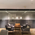 上記写真のように塀のように覆う間仕切りや、ドアのような構造の間仕切り、天井にレールを設置し、カーテンのように使用できる間仕切りなど、様々なタイプの間仕切りがご提案可能です。