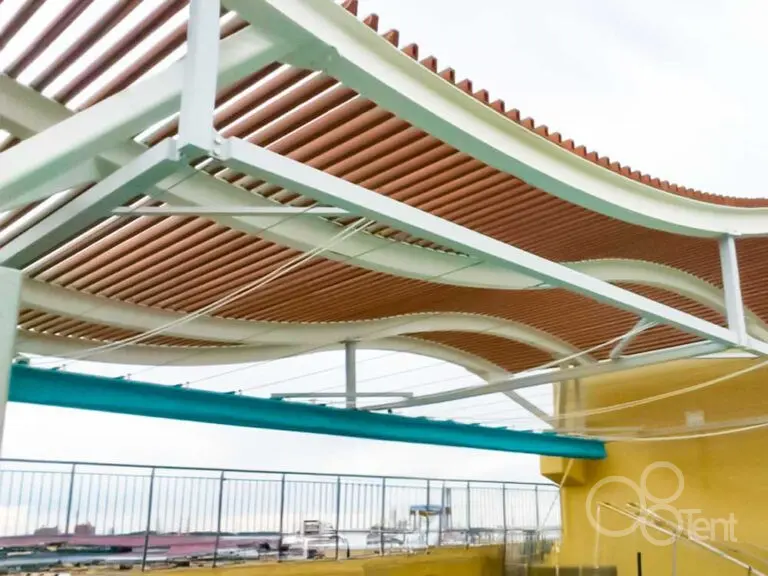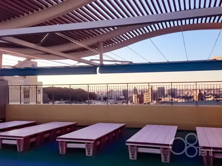 開閉式テントは天井のシート部分を開閉することができるテント屋根で、屋外空間の日よけや雨よけ用途でご利用いただけます。ご利用目的やシーンに応じて、サイズ・テント生地・形状・オプション選択とオーダーメイドで開閉式テントの製作・施工を承っております。
