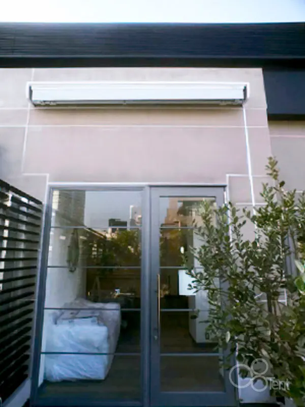 「オーニングテント」は、日除けを目的としたテントで、日本で古来より使われてきた、「簾(すだれ)」=オーニング(awning)のことです。また、弊社では、壁等に固定して可動しないものを「庇テント」、可動するものを「オーニングテント」と分類しております。