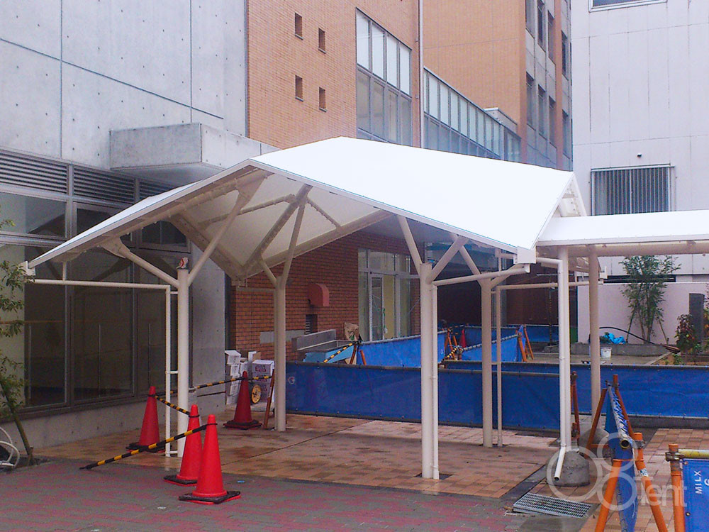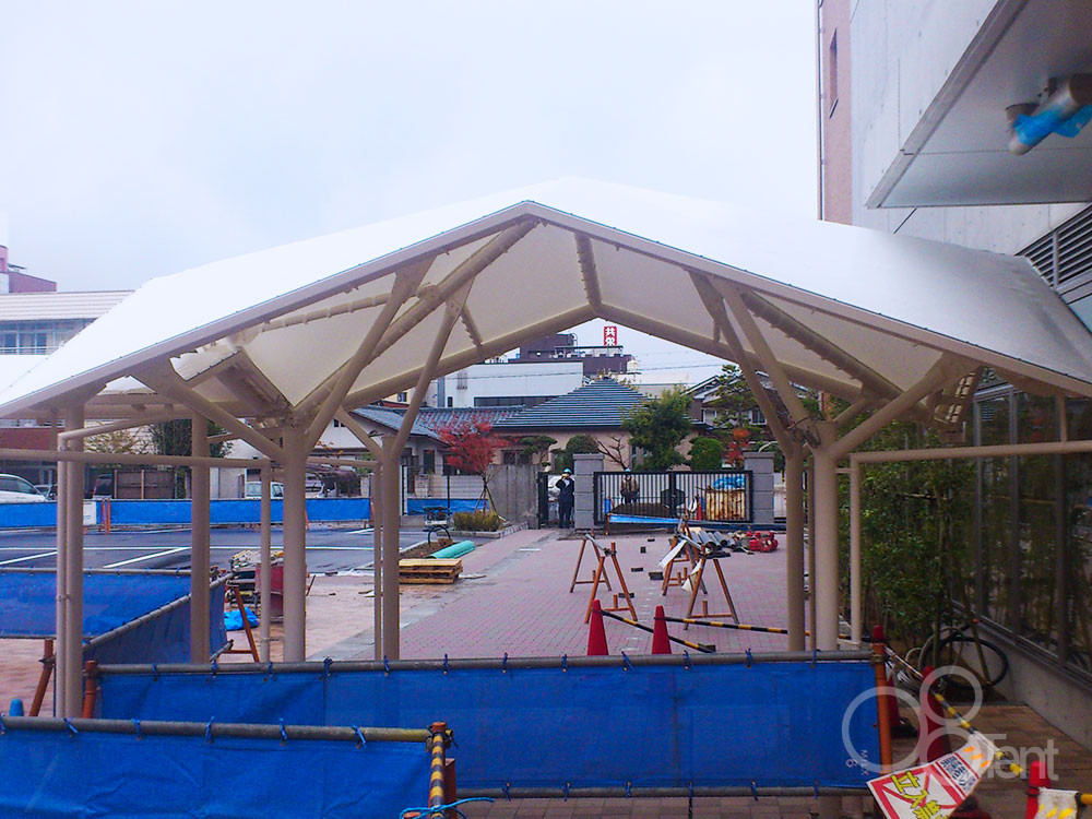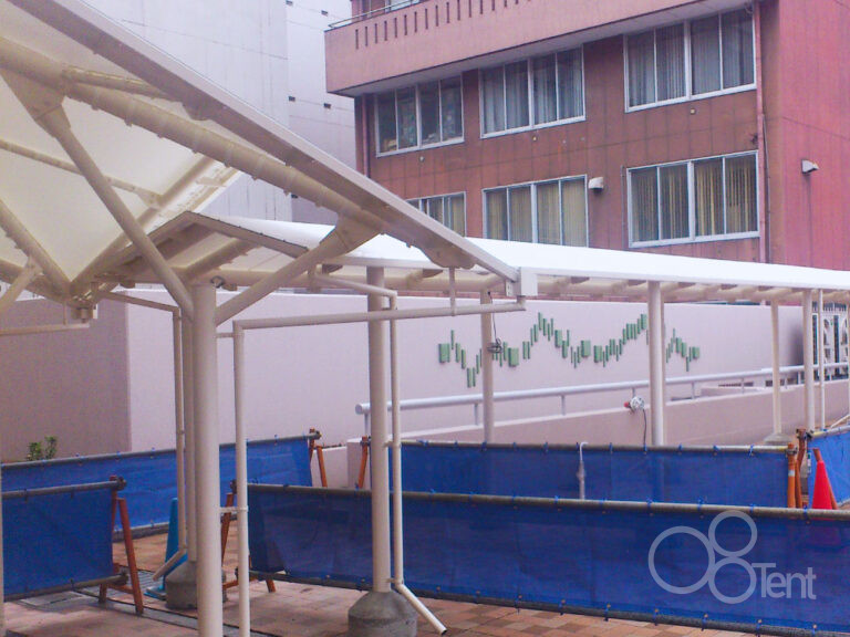 テント屋根は、商業施設や駐車場、学校、工場など、幅広い用途で活用されるテント生地で覆われている屋根です。