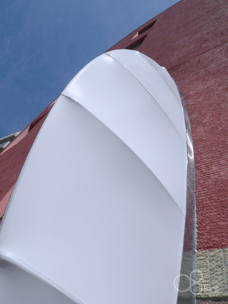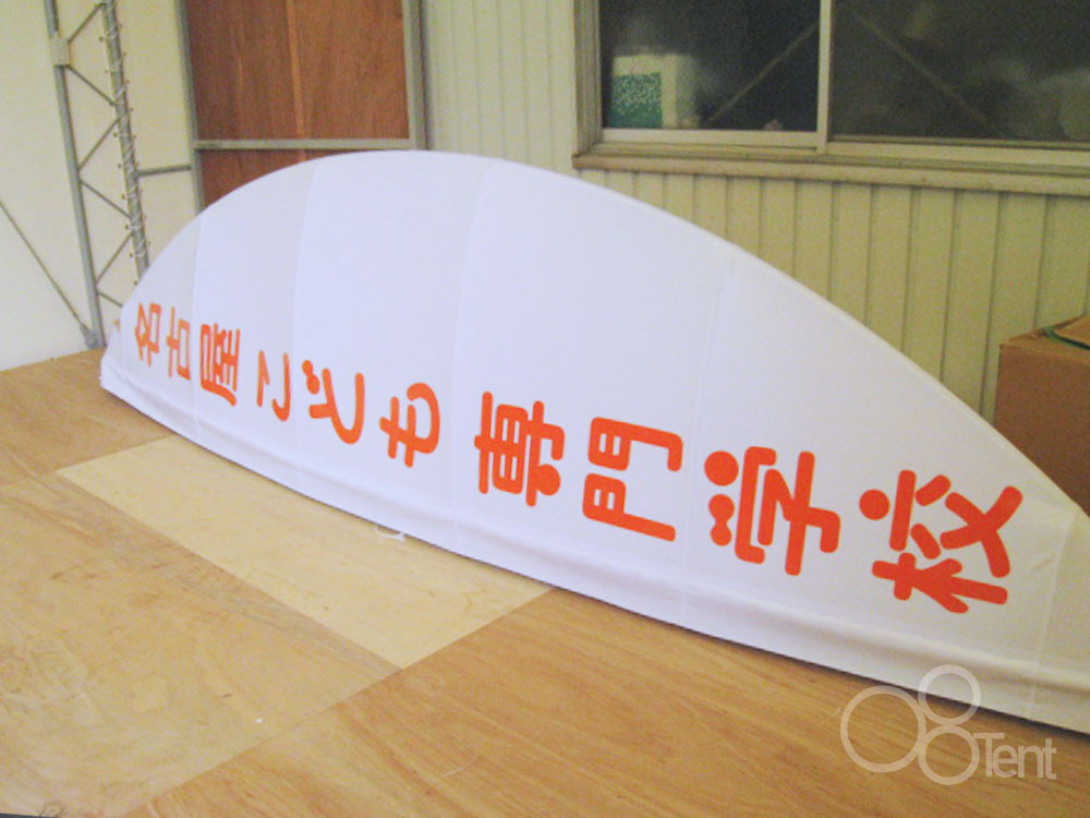 学校のシンボルに。曲線が美しい半月形のデザイン袖看板 施工事例 2025年12月2日 最終更新日時 : 2025年11月6日 08adminデザイン袖看板の施工詳細袖看板(突出し看板)を学校入口に施工いたしました。曲線が特徴的な、立体の半月形の袖看板(突出し看板)です。膜材の柔軟性を生かし、曲線フォルムの看板をお作りいたしました。