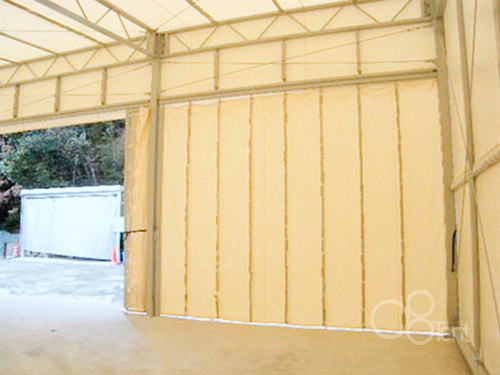 【物流・資材保管】低コスト&短工期を実現。開口部を広く確保したテント倉庫の新設事例