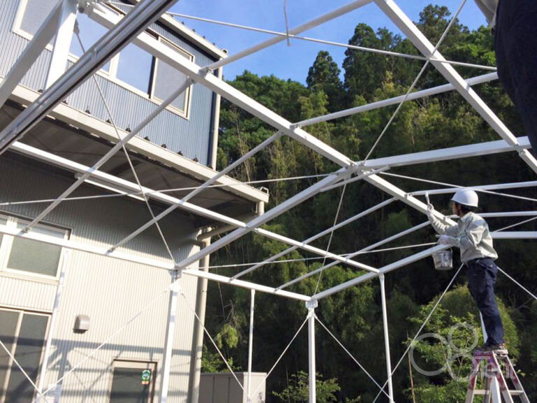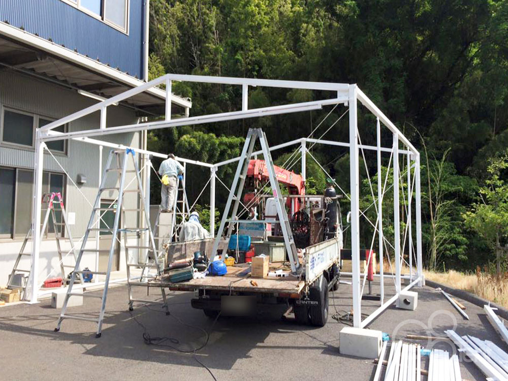工場敷地内の限られたスペースに、工具や資材を保管するための小型テント倉庫を施工いたしました。 一般的なビニールカーテンとは異なり、出入り口には「施錠可能な金具」を取り付け。テント倉庫のメリットである「低コスト・短工期」はそのままに、セキュリティ面も強化した使い勝手の良い保管庫です。