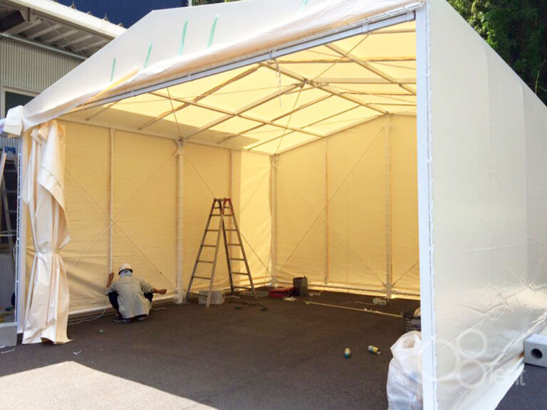 【資材・工具保管】狭小スペースを有効活用。施錠可能なカーテン付き小型テント倉庫