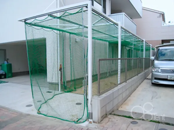 野球練習用ネットの施工詳細 子供用の野球練習用のネットを施工しました。こちらは個人宅様に、防球ネットを施工させていただいた例です。お庭に合わせたレールとカーテン式のネットを取り付けて、簡易ブルペンの出来上がりです。