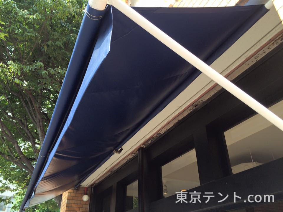 「オーニングテント」は、日除けを目的としたテントで、日本で古来より使われてきた、「簾(すだれ)」=オーニング(awning)のことです。また、弊社では、壁等に固定して可動しないものを「庇テント」、可動するものを「オーニングテント」と分類しております。